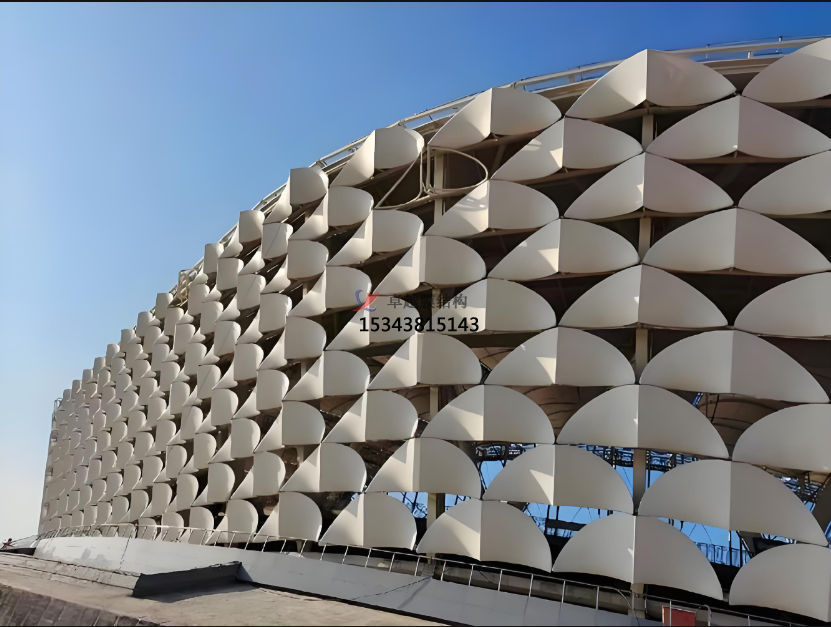 ?。撼1挥糜隗w育場館、展覽館、會議中心等大型公共建筑的屋頂和墻面。例如,北京奧運會的 “水立方”,其外立面使用了 ETFE 膜材(與 PTFE 網(wǎng)格覆膜有相似特性),而 PTFE 網(wǎng)格覆膜也可用于類似建筑,能提供良好的采光和獨特的視覺效果,同時減輕建筑自重,實現(xiàn)大跨度的空間結(jié)構(gòu)。