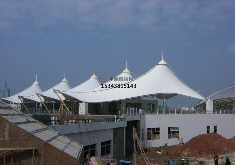 景觀膜結(jié)構(gòu)遮陽棚加工制作主要加工流程包括:進(jìn)料→檢驗(yàn)?zāi)げ?rarr;圖紙技術(shù)會(huì)審→膜片下料、編號(hào)→膜片編排放樣→膜片初拼→高頻駁接→包裝。由于膜材的裁剪、包裝過程都較為復(fù)雜,各種角度變化較多,且加工精度要求非常高,所以在制作過程中要加強(qiáng)質(zhì)量管理,保證制作精度。加工時(shí)的注意事項(xiàng)有: