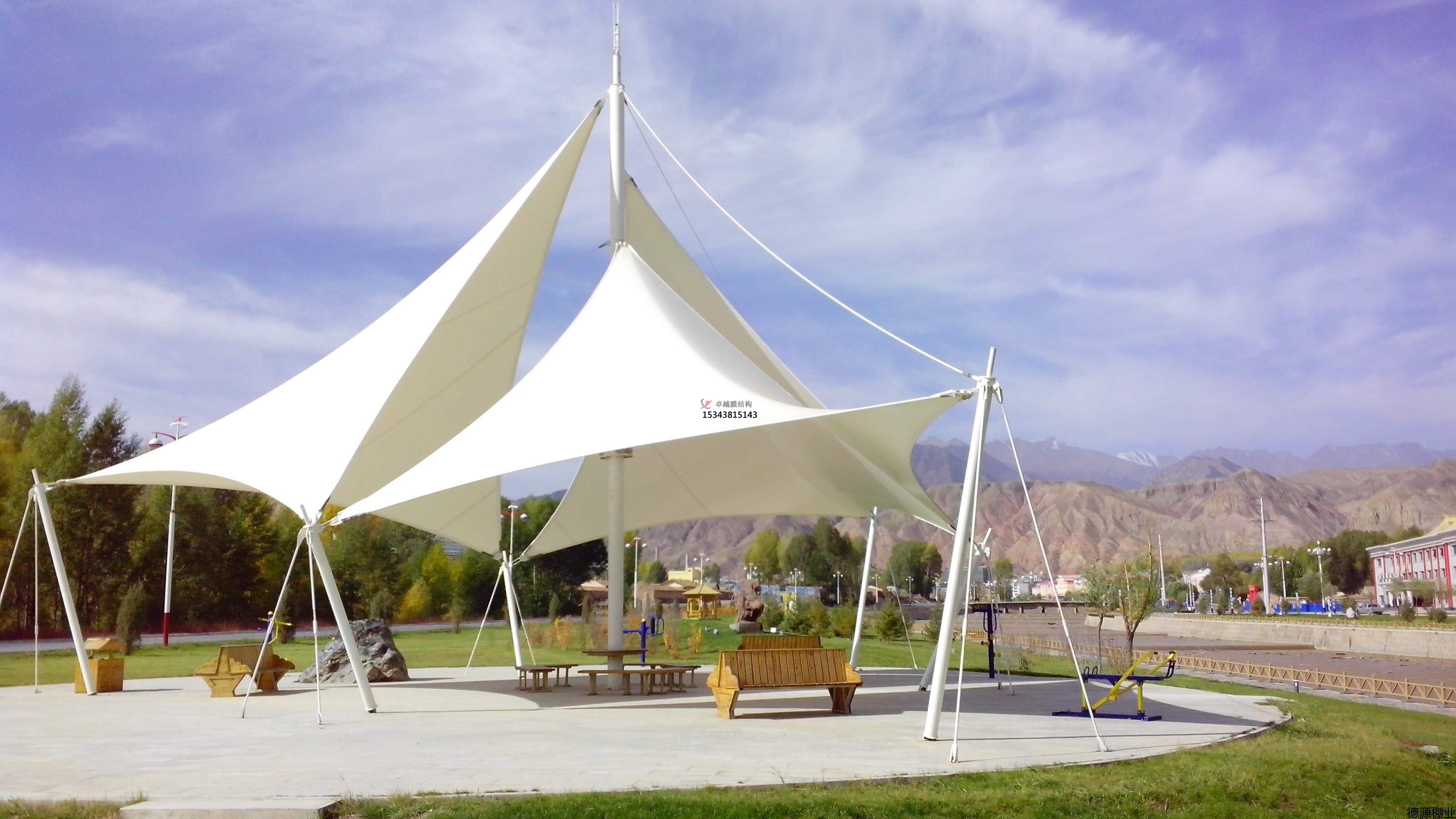 e,景觀膜結(jié)構(gòu)遮陽棚單元安全吊裝的工作環(huán)境要嚴格控制。同時滿足以下幾點:風(fēng)力小于三級,氣溫高于4℃,現(xiàn)場可能傷及張拉膜的物件已采取防護措施,現(xiàn)場可能污染張拉膜的物件已清除。