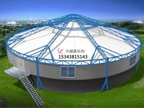 反吊膜采用了膜材反吊的結(jié)構(gòu)形式,不僅造型美觀,而且也使鋼結(jié)構(gòu)免于被池內(nèi)廢氣侵蝕,鋼結(jié)構(gòu)的正常運(yùn)用壽命。而膜材選擇運(yùn)用氟碳纖維膜作為膜材的一選擇。是因?yàn)檫@種膜材不僅抗拉強(qiáng)度大,而且抗侵蝕實(shí)力強(qiáng),可以對(duì)池內(nèi)廢氣擁有抗侵蝕的作用,從而保護(hù)了膜材的運(yùn)用壽命,且質(zhì)保期在15年。