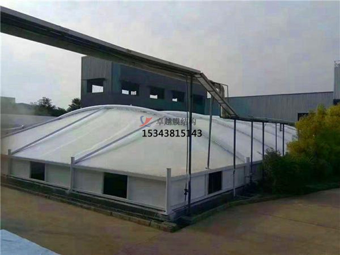 2.確認(rèn)膜材的品種:污水池加蓋除臭選用的膜材有許多中,應(yīng)根據(jù)池體的跨度挑選適宜的膜材才干達(dá)到預(yù)期的作用.一般,關(guān)于大跨度而言,選用污水池專用膜材氟碳纖維膜比較適宜,因為這種膜材具有很強(qiáng)的抗腐蝕能力,能對池內(nèi)廢氣起到抗腐蝕的作用,無形中保證了膜材的使用壽命;