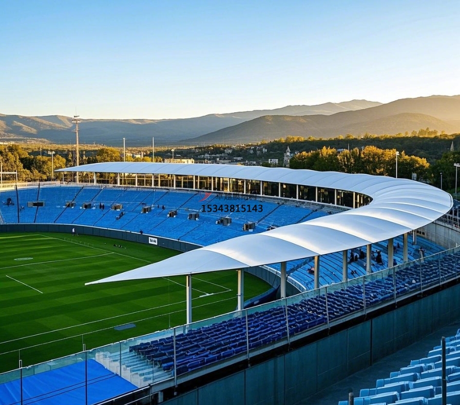 張拉式膜結構通過精確計算鋼索拉力與膜材應力分布,塑造出貼合觀眾視線的曲面。例如,在橢圓型體育場中,張拉膜結構可根據觀眾席弧度,設計成連續(xù)起伏的波浪狀,使每一排觀眾都能獲得無遮擋的最佳觀賽視角,視角平均提升 15° - 20°。?