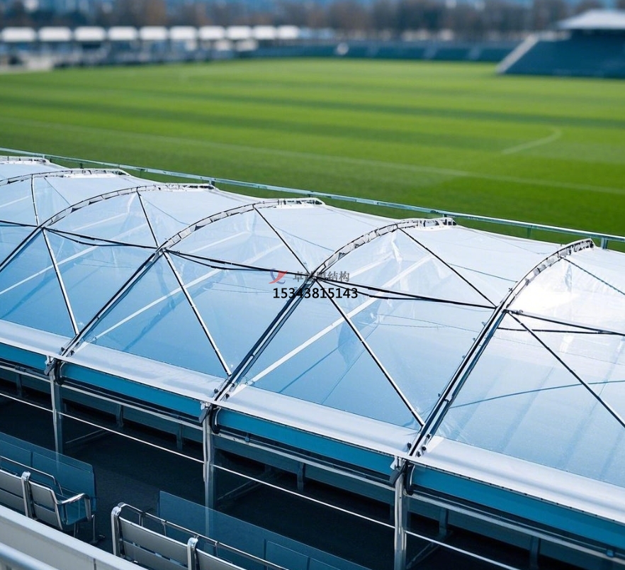 骨架式膜結構在大型體育場館中廣泛應用,其穩(wěn)定的鋼結構骨架支撐大面積膜材,形成開闊的內部空間。以足球場看臺為例,骨架式膜結構可覆蓋整個觀眾區(qū)域,為上萬人提供舒適觀賽空間,且內部無立柱阻擋視線,觀眾容量比傳統(tǒng)有柱看臺增加 10% - 15%。?