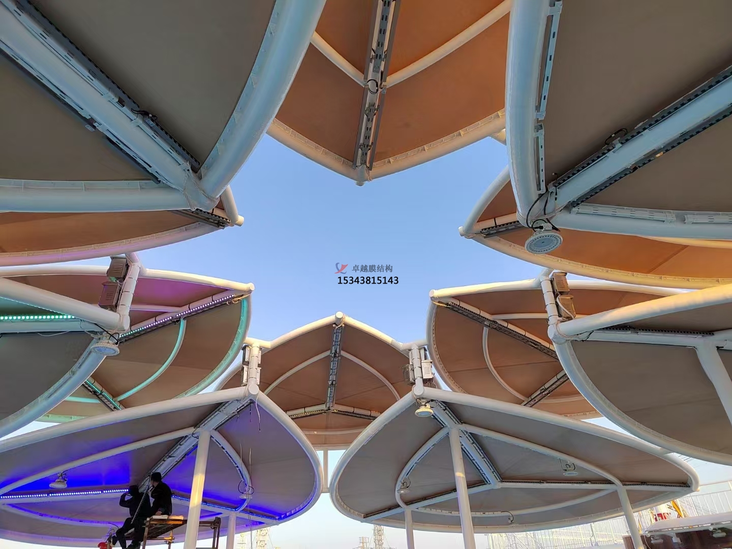 日常生活中,我們常在公園中見到白色的膜結(jié)構(gòu)景觀,除了公園、商場展廳、機(jī)場大廳、標(biāo)志性建筑物旁等室內(nèi)外場所中均可安裝膜結(jié)構(gòu)景觀。而膜結(jié)構(gòu)景觀除了常見的白色模材,我們膜結(jié)構(gòu)棚還有橙色、藍(lán)色等其他顏色的模材,以便搭配不同風(fēng)格的場景。