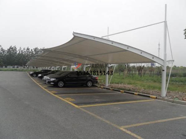 膜結(jié)構(gòu)車棚采用張拉膜結(jié)構(gòu)形式,形式新穎活潑,膜頂平滑過渡,結(jié)構(gòu)美觀、輕巧、整體造型相互輝映,別具一格。膜結(jié)構(gòu)的張拉樣式無形當(dāng)中增大了空間跨度,輕輕松松的將整個的車棚處被覆蓋,在簡化了建筑結(jié)構(gòu)的同時建筑重量也輕松很多,讓施工更簡便,還降低了施工工人的危險系數(shù),縮短了工程的建造工期。