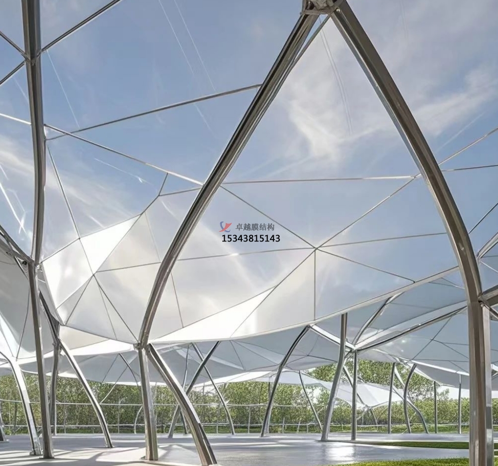 ‌張拉索膜結(jié)構(gòu)‌:張拉索膜結(jié)構(gòu)通過張拉使膜的內(nèi)部產(chǎn)生一定的預應力,以抵御外界的風荷載和其他荷載。這種結(jié)構(gòu)可以根據(jù)需要制成任意復雜曲面形狀,體現(xiàn)自然流暢之美,同時膜材的多種顏色選擇也使其能更好地適應周邊環(huán)境,滿足建筑效果要求。